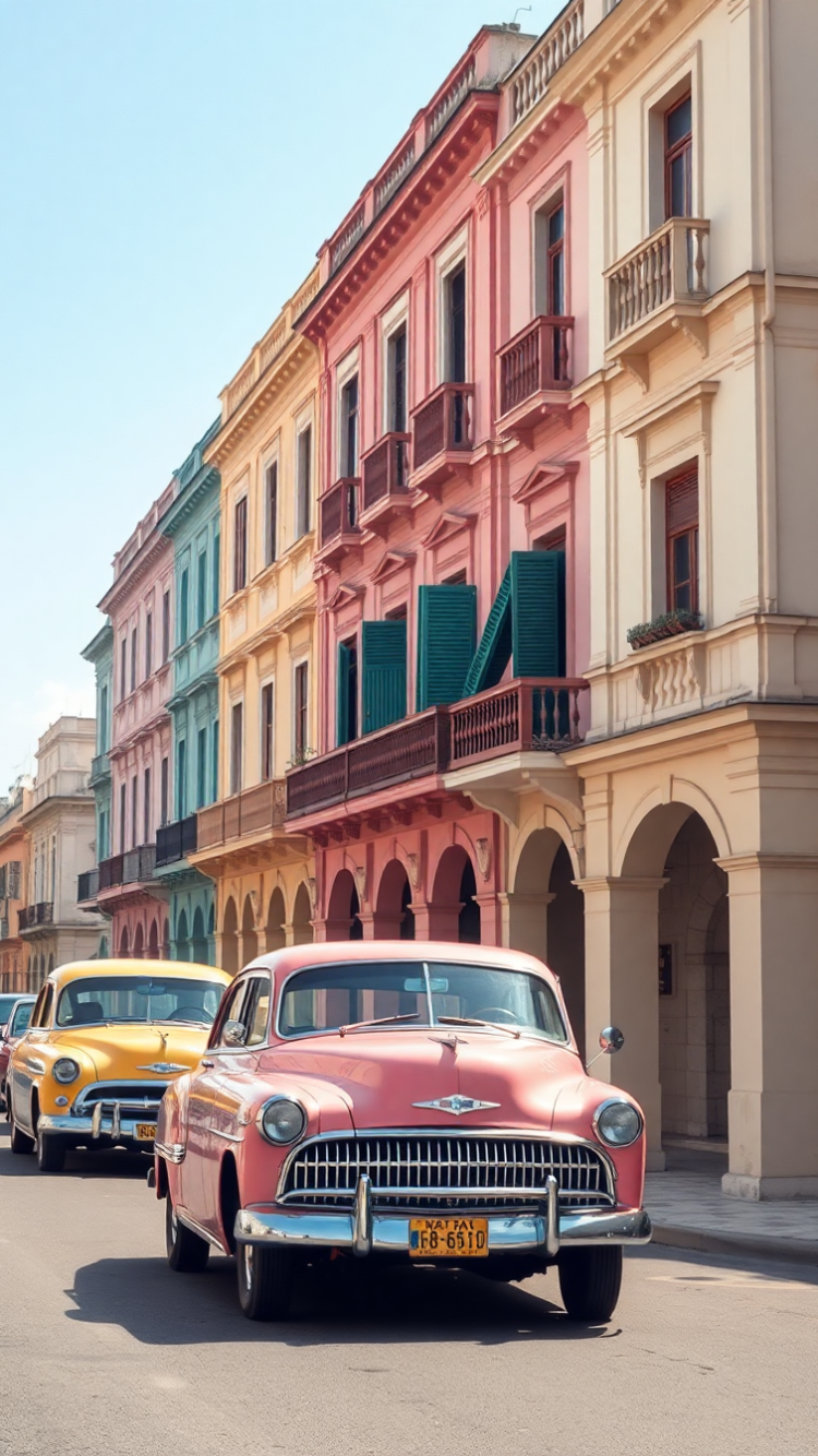 Old Havana Classic Cars Pastel Photorealistic Wallpaper