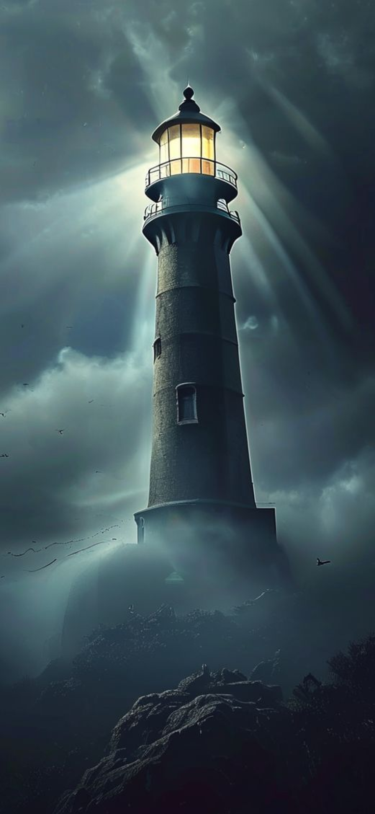 Old Lighthouse Beam Cutting Through Photorealistic Wallpaper