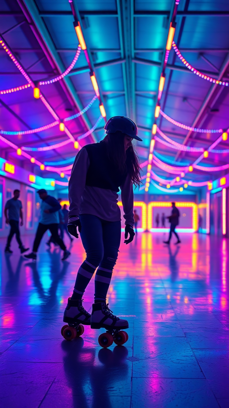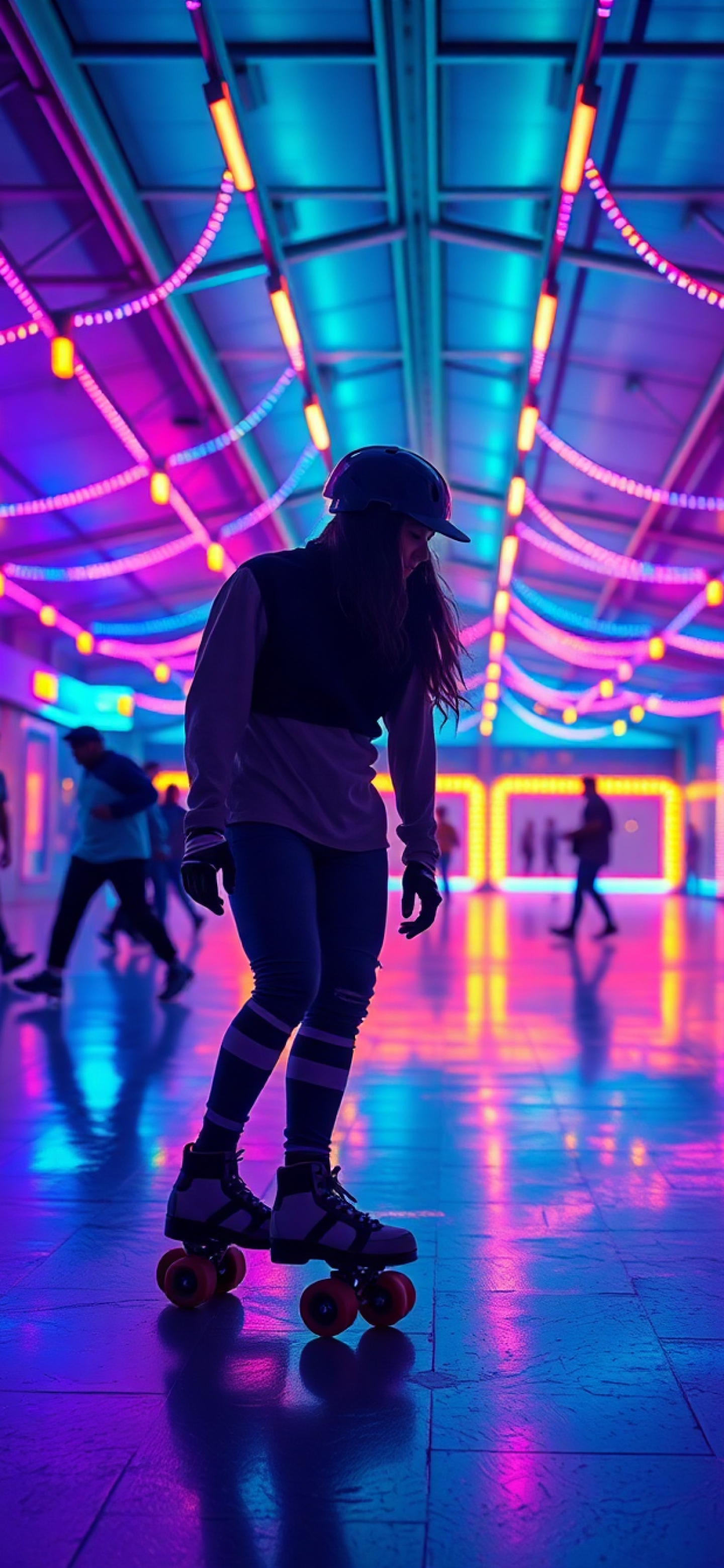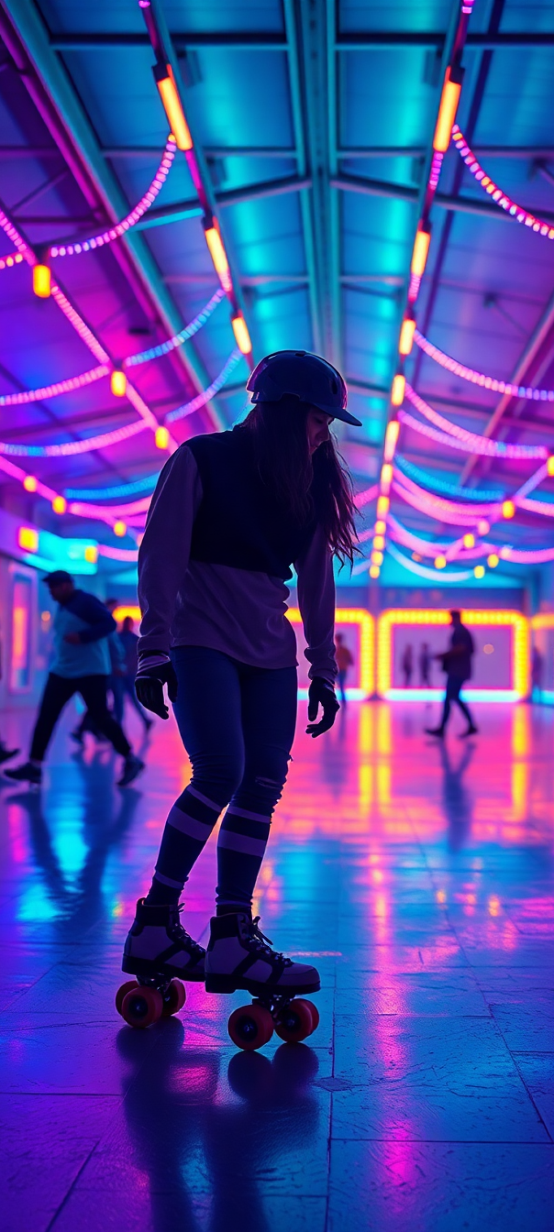 Roller Skating Rink 80s Neon Photorealistic Wallpaper