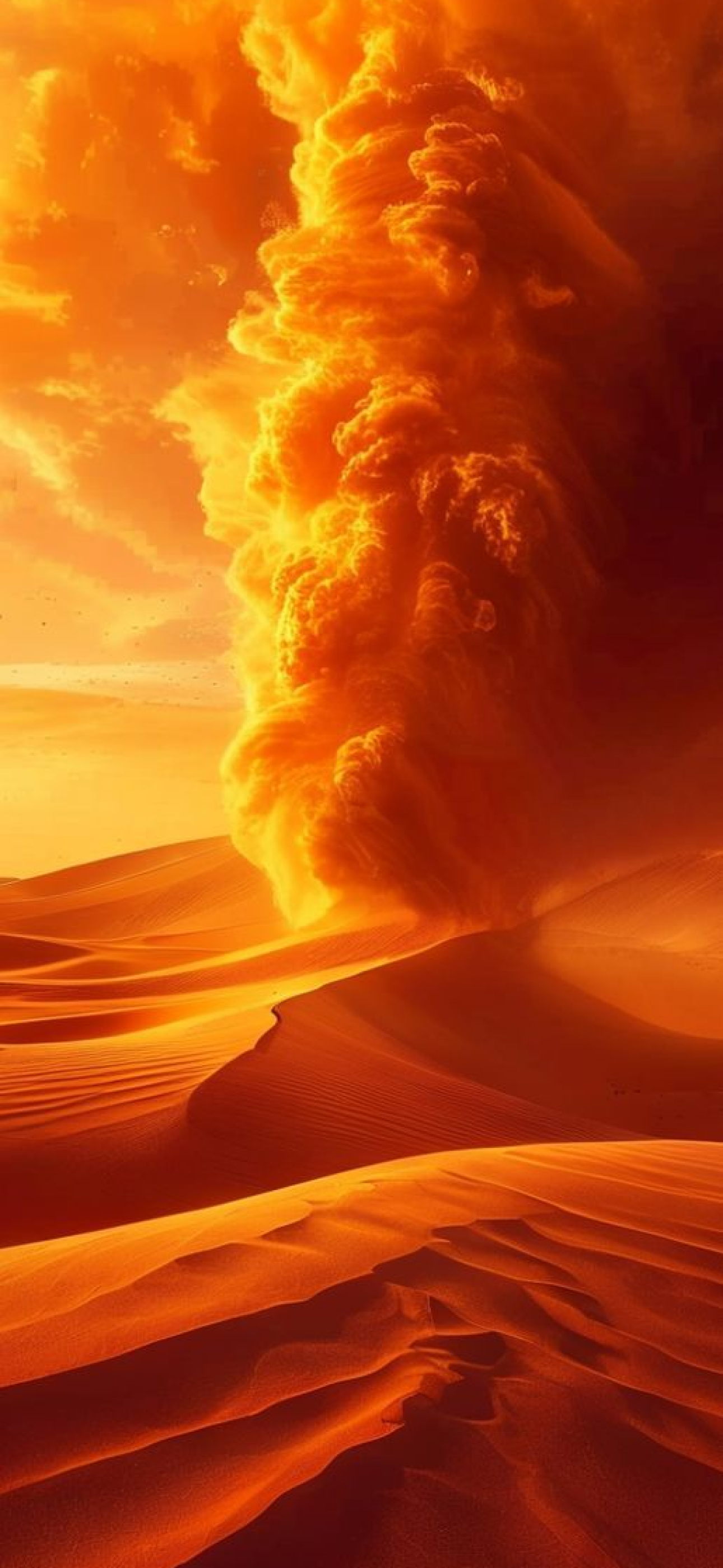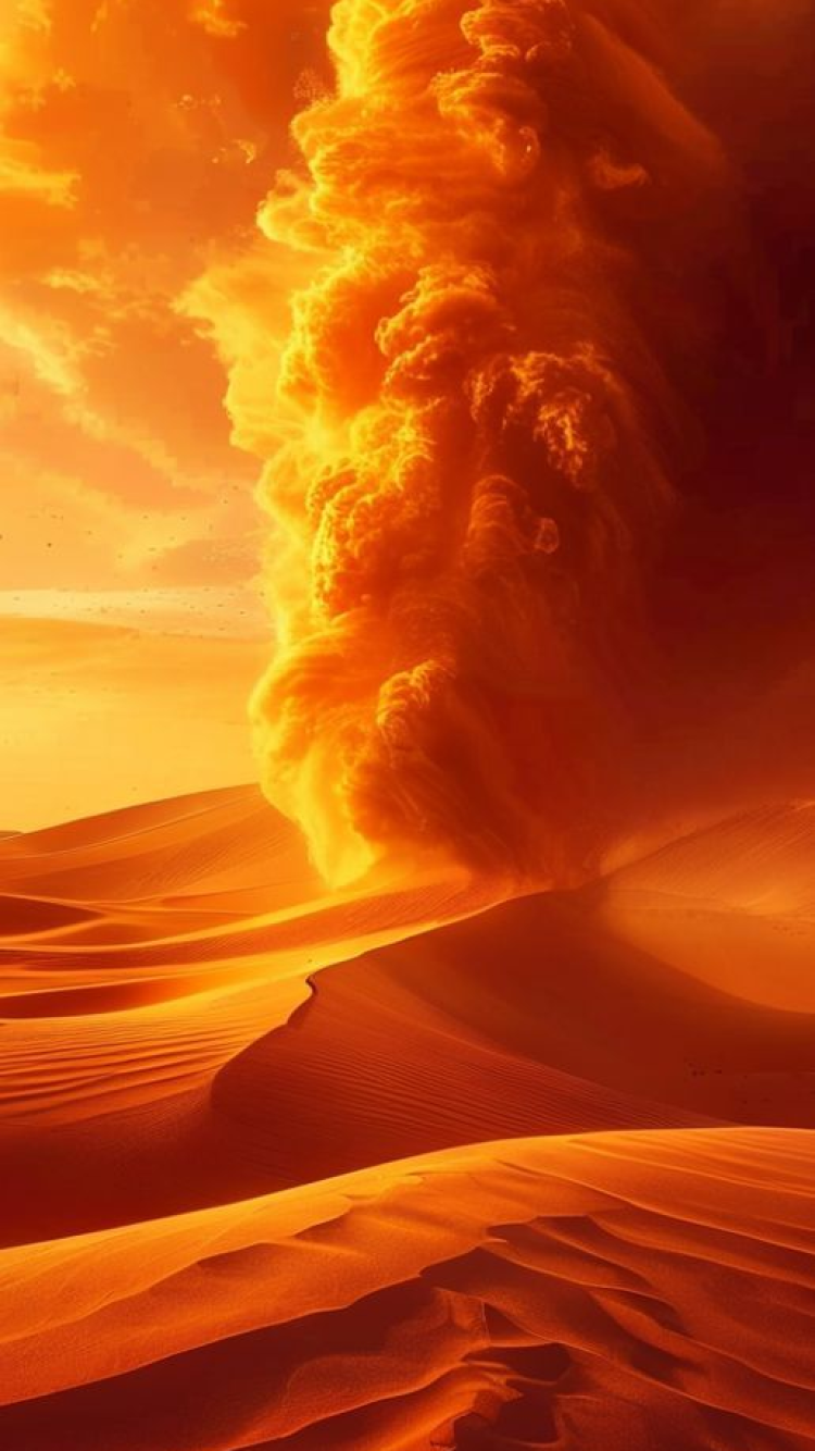 Sandstorm Approaching Desert Dramatic Orange Photorealistic Wallpaper