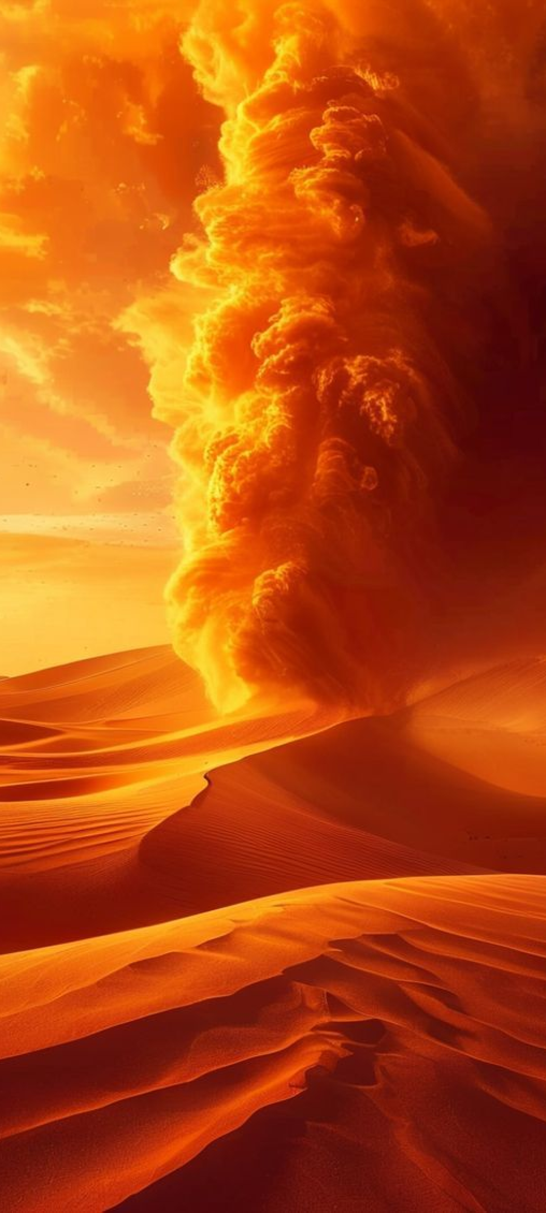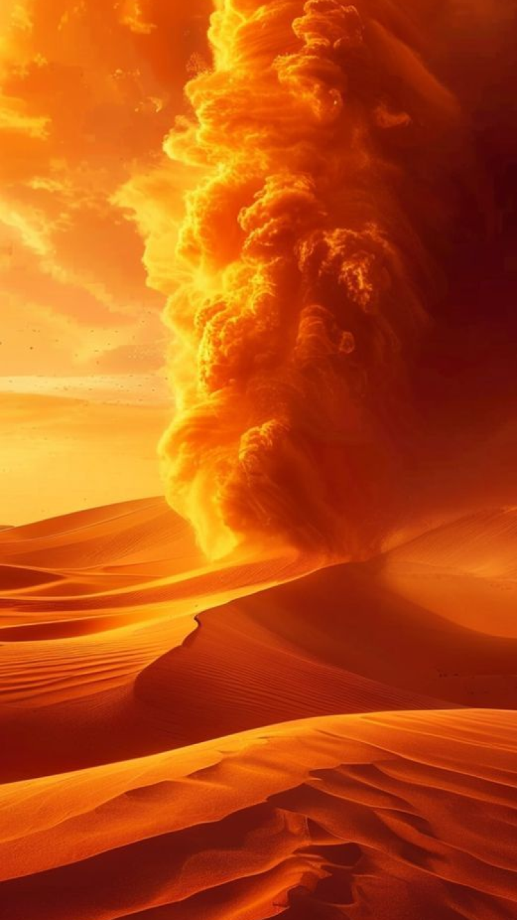 Sandstorm Approaching Desert Dramatic Orange Photorealistic Wallpaper