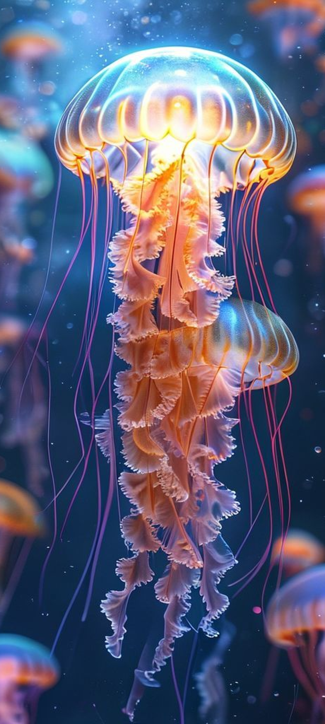 School Of Jellyfish Pulsing Glowing Photorealistic Wallpaper
