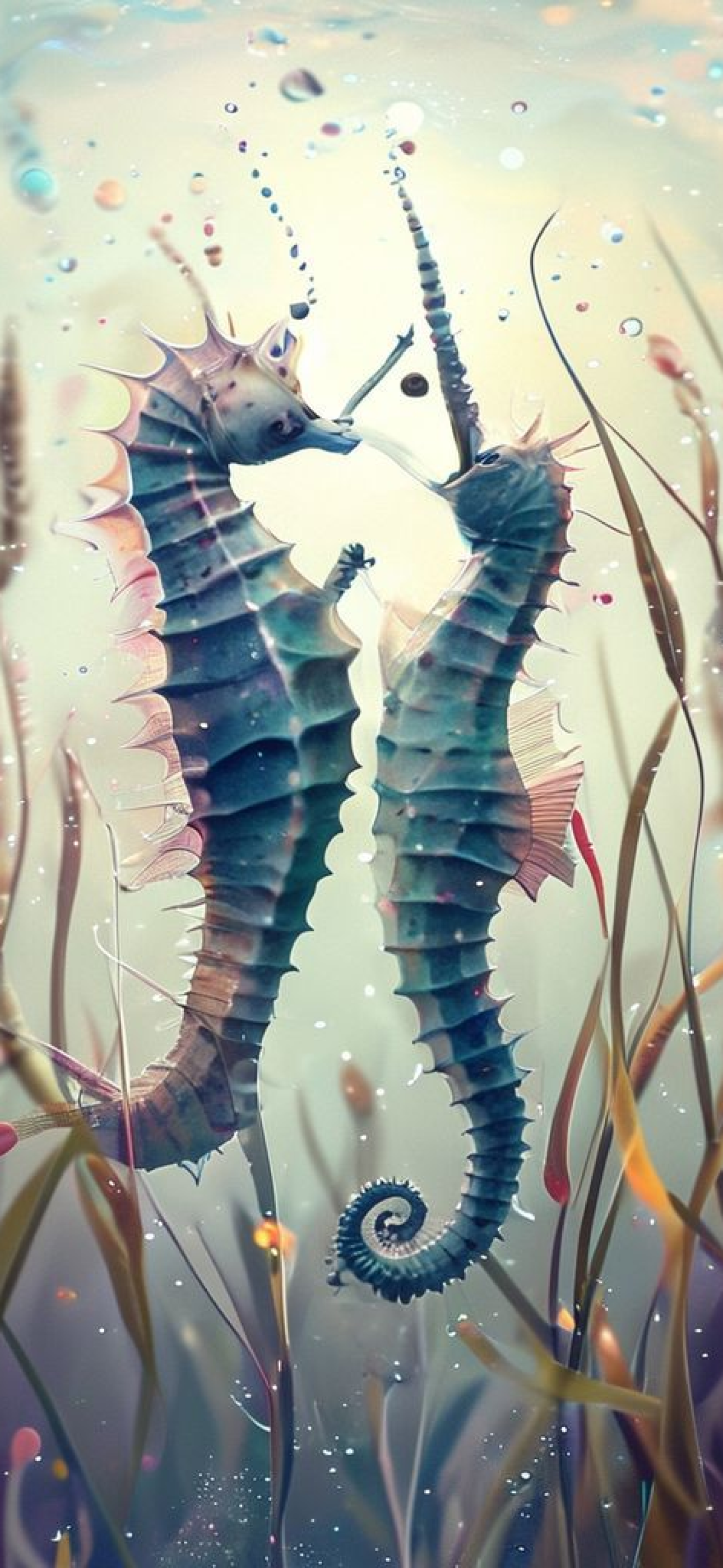 Seahorse Couple Dancing Seagrass Magical Aesthetic Wallpaper