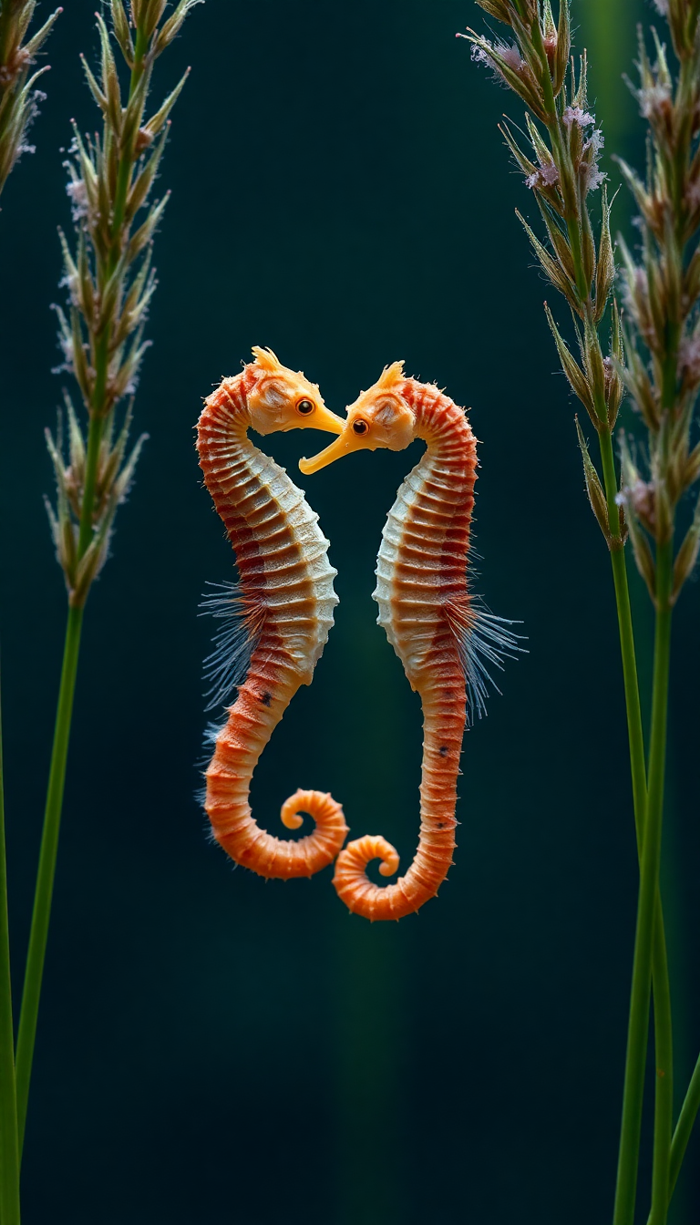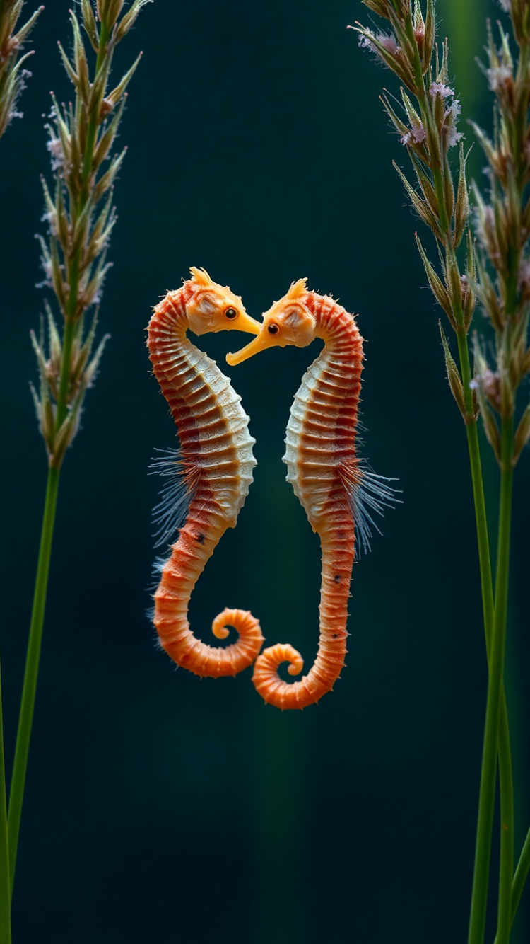 seahorse couple dancing seagrass magical