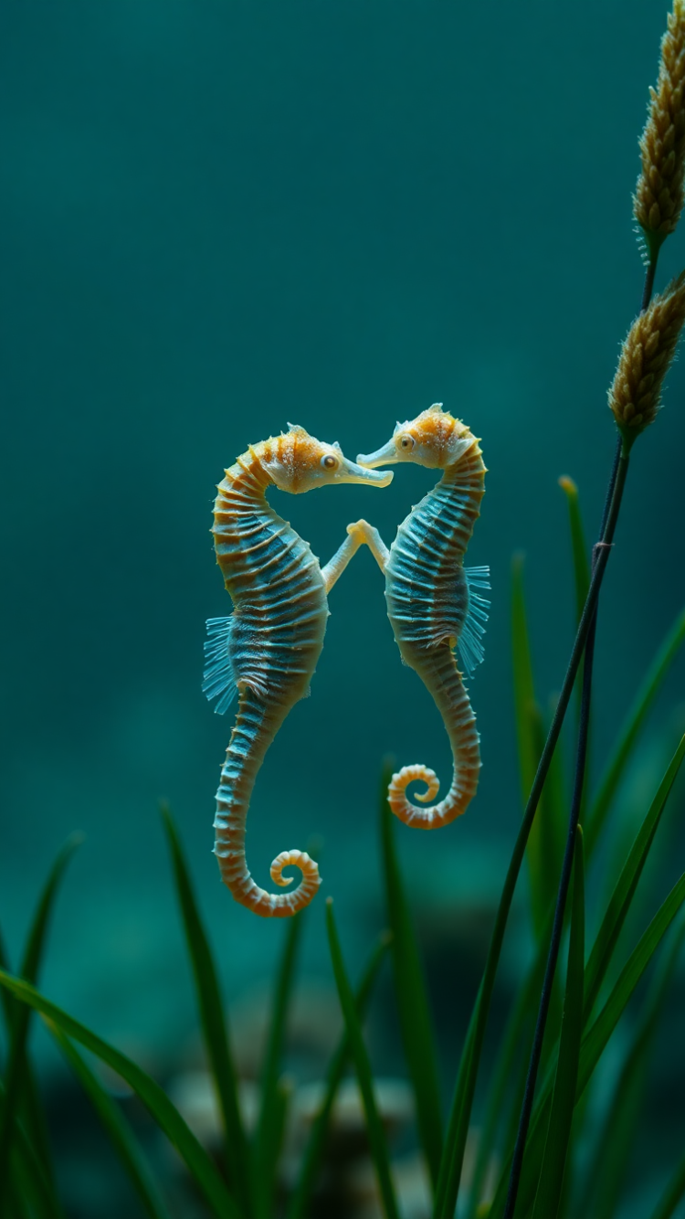 seahorse couple dancing seagrass magical