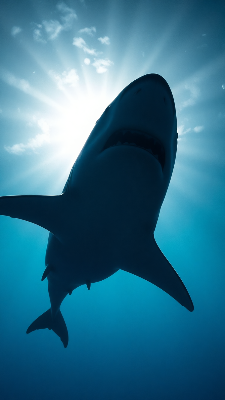 Shark Silhouette From Below Dramatic Photorealistic Wallpaper
