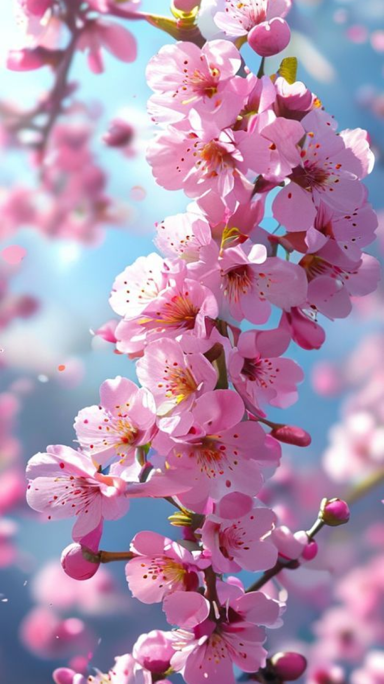 Spring Cherry Blossoms Japan Peak Photorealistic Wallpaper