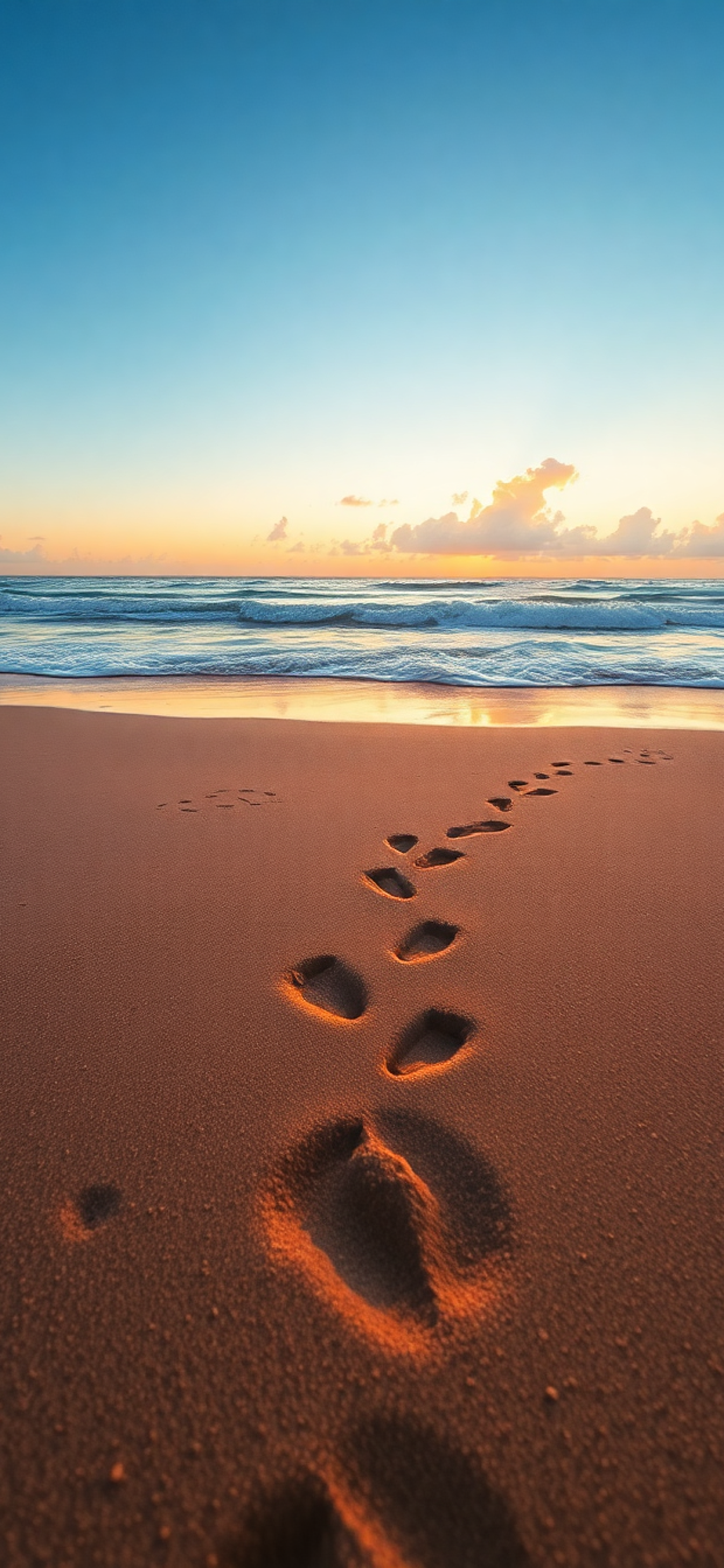 Summer Beach Golden Hour Footprints Photorealistic Wallpaper