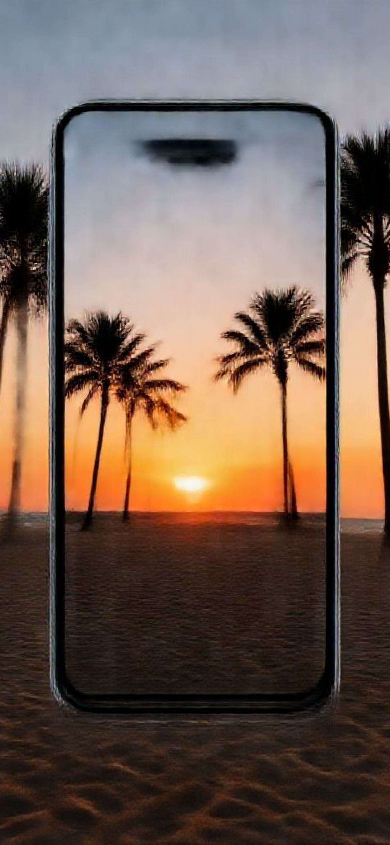 Summer Sunset Beach Silhouette Palm Photorealistic Wallpaper