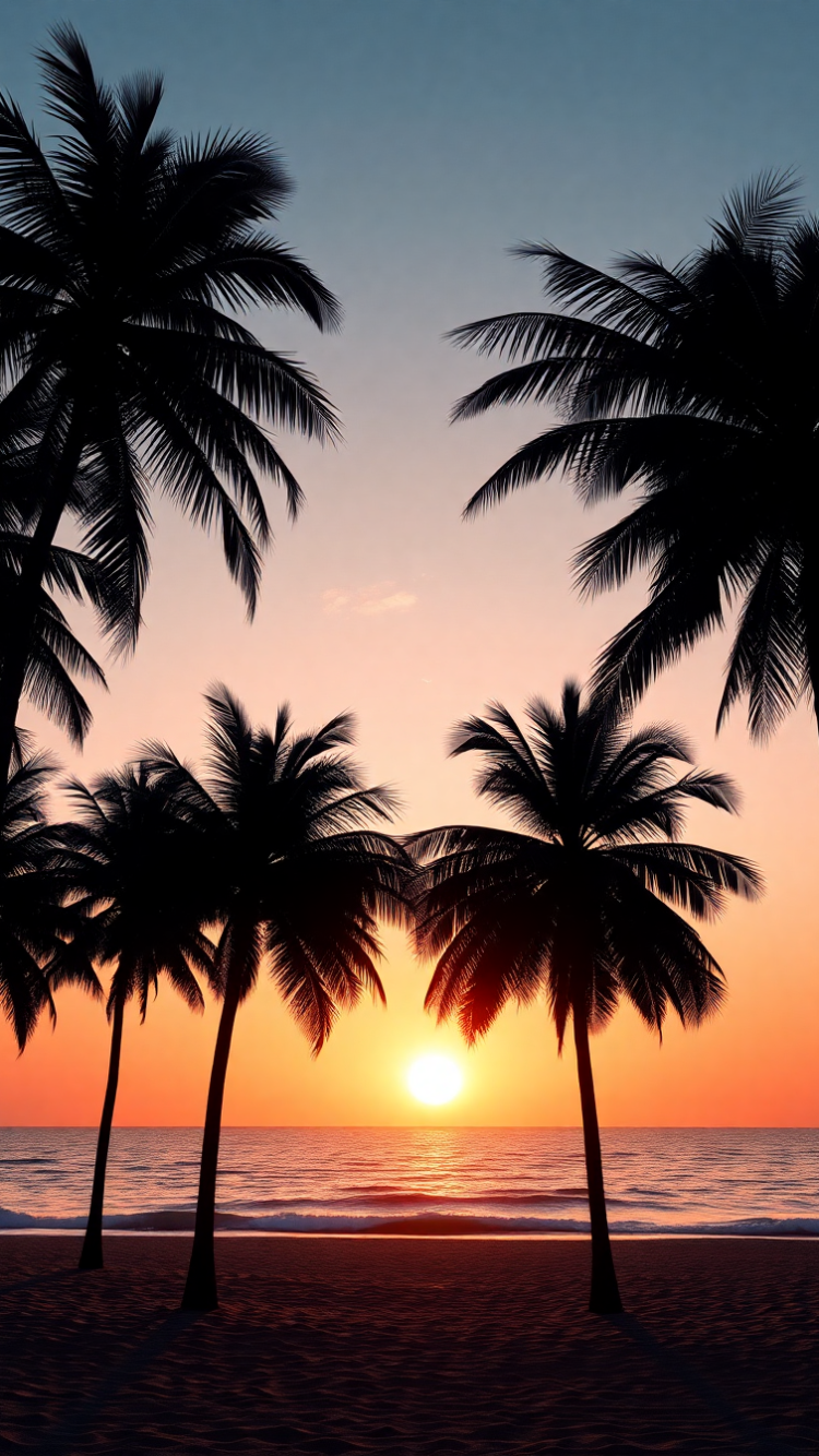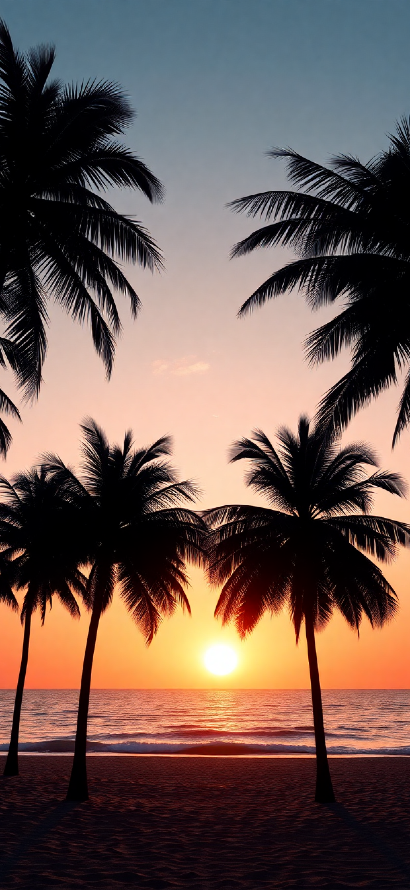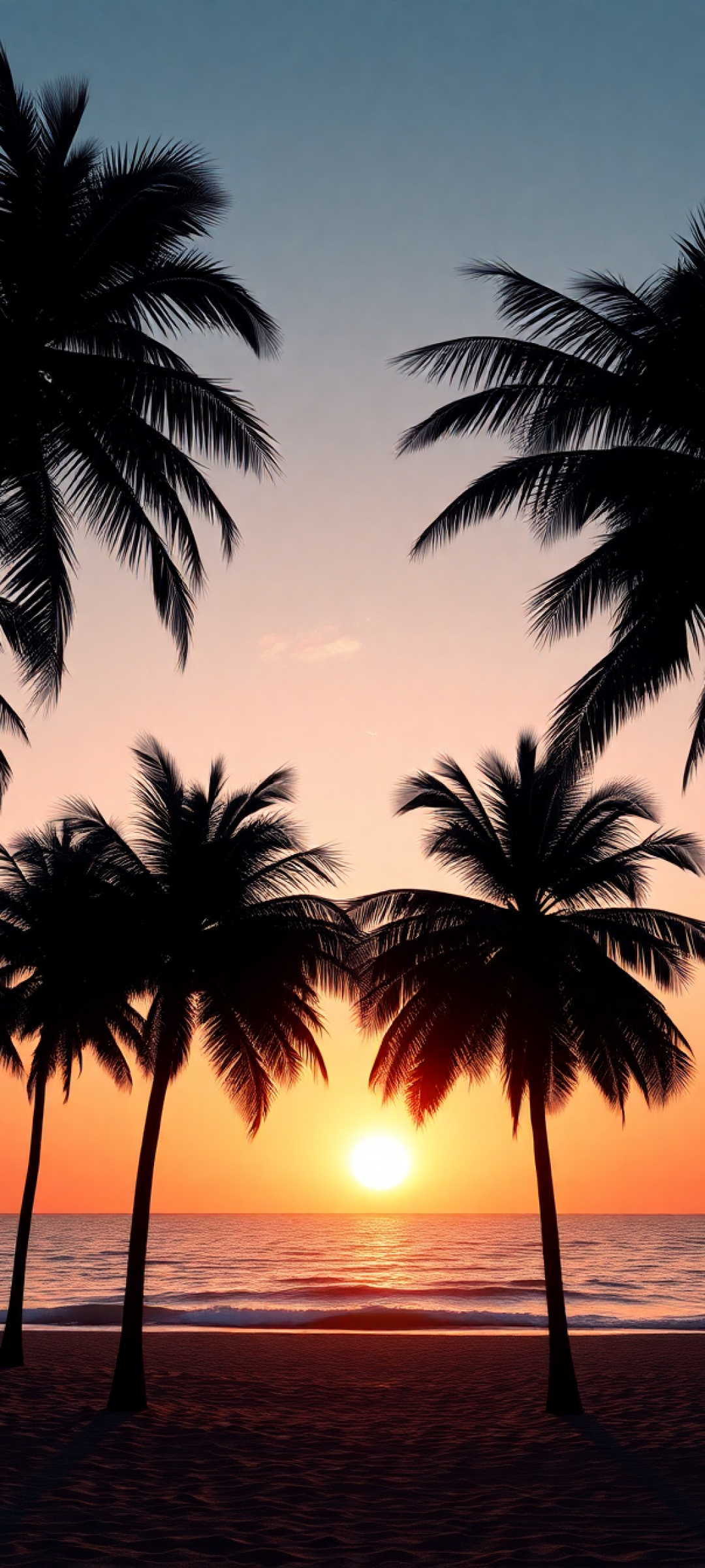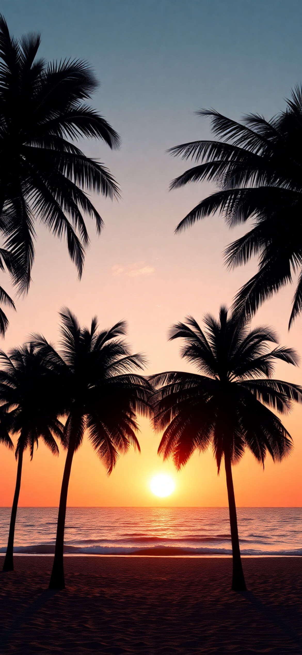 Summer Sunset Beach Silhouette Palm Photorealistic Wallpaper