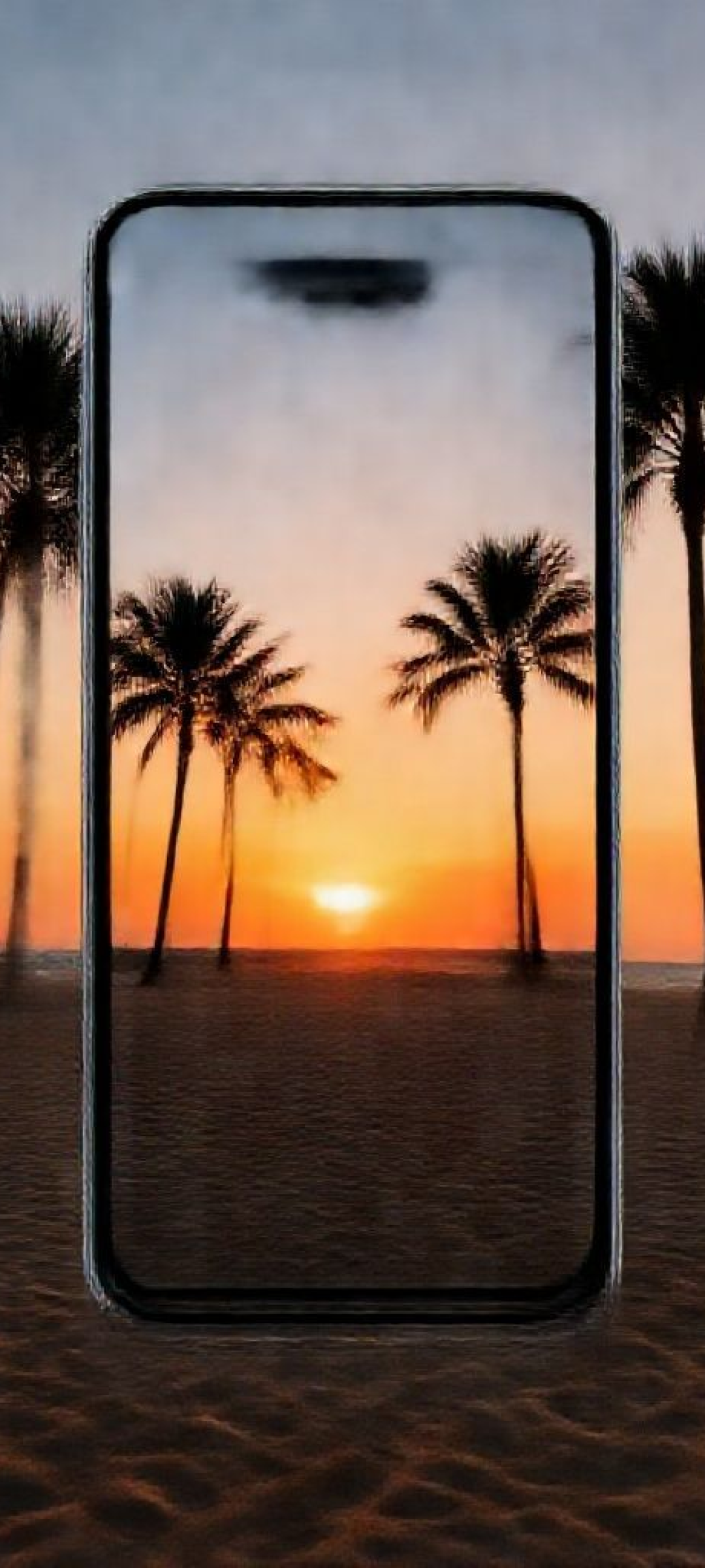 Summer Sunset Beach Silhouette Palm Photorealistic Wallpaper
