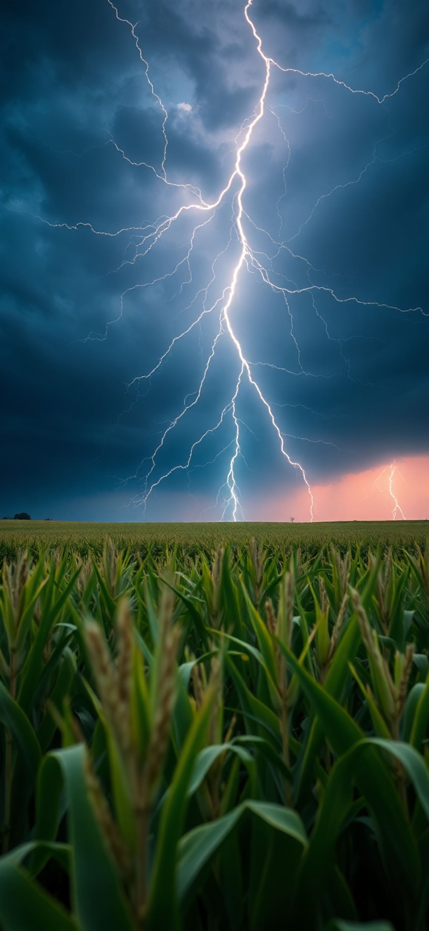 summer thunderstorm lightning over cornfield
