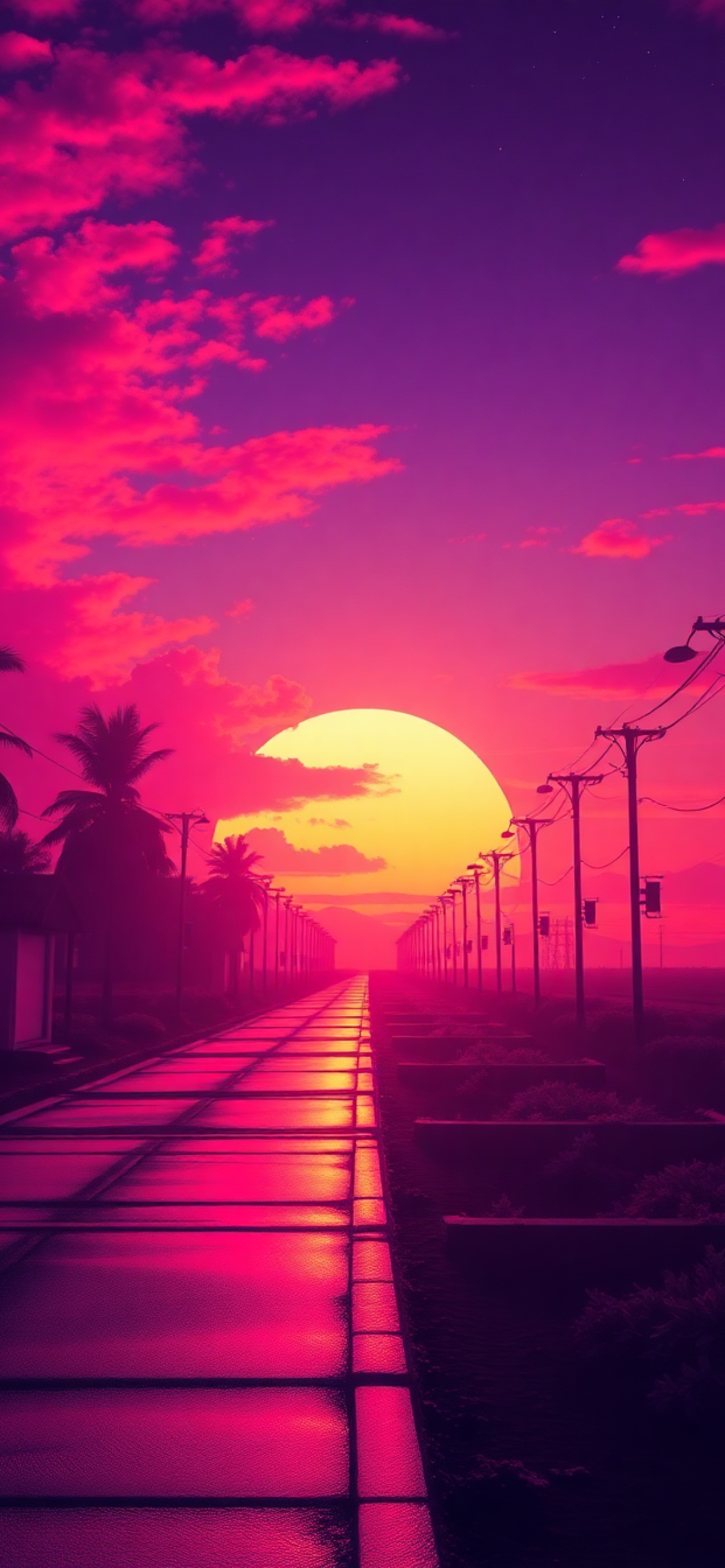 Synthwave sunset that shows the 80s suitable for a wallpaper