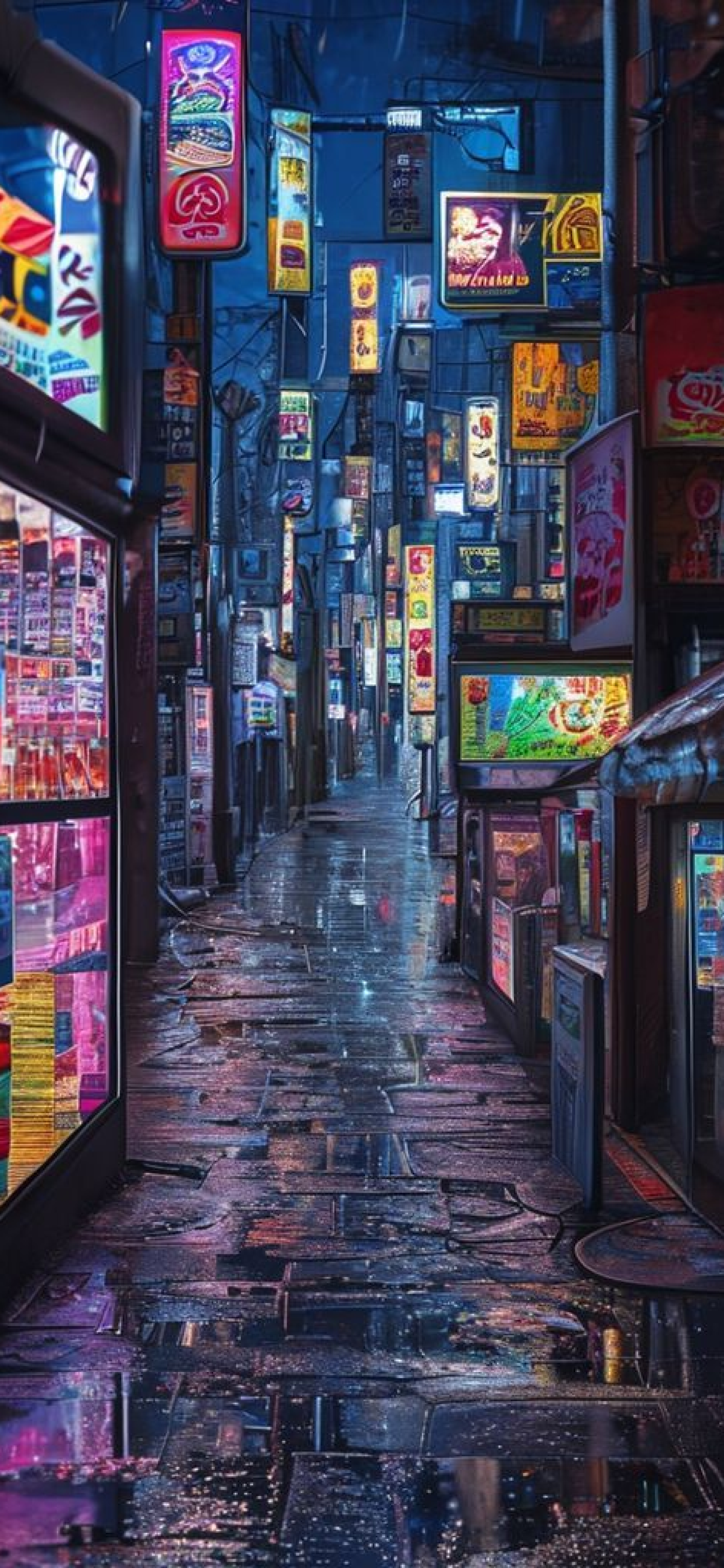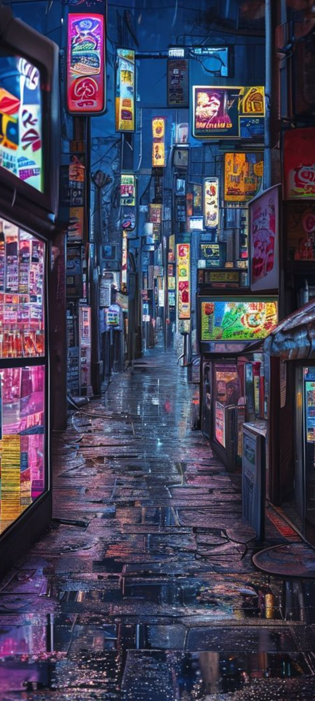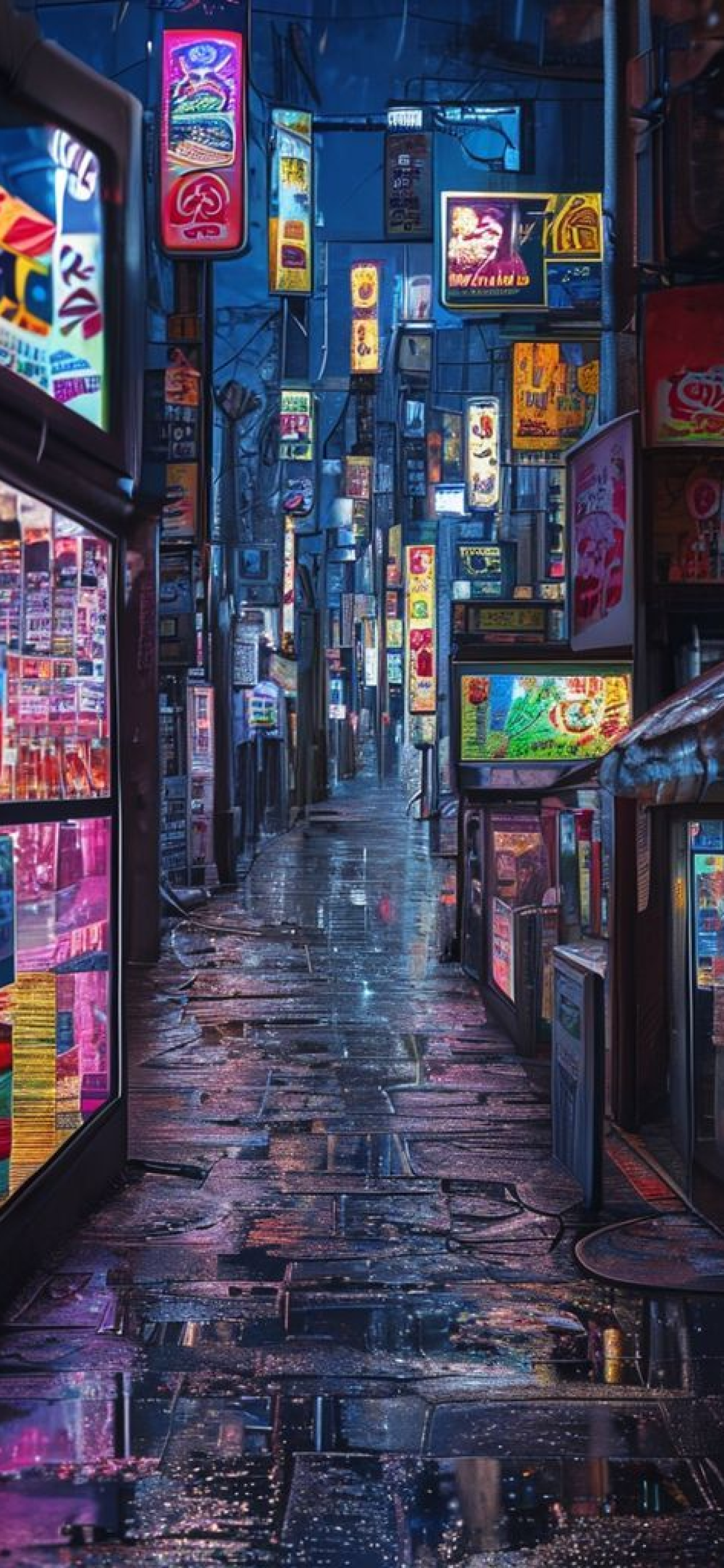 tokyo alley at night vending machines glow rain