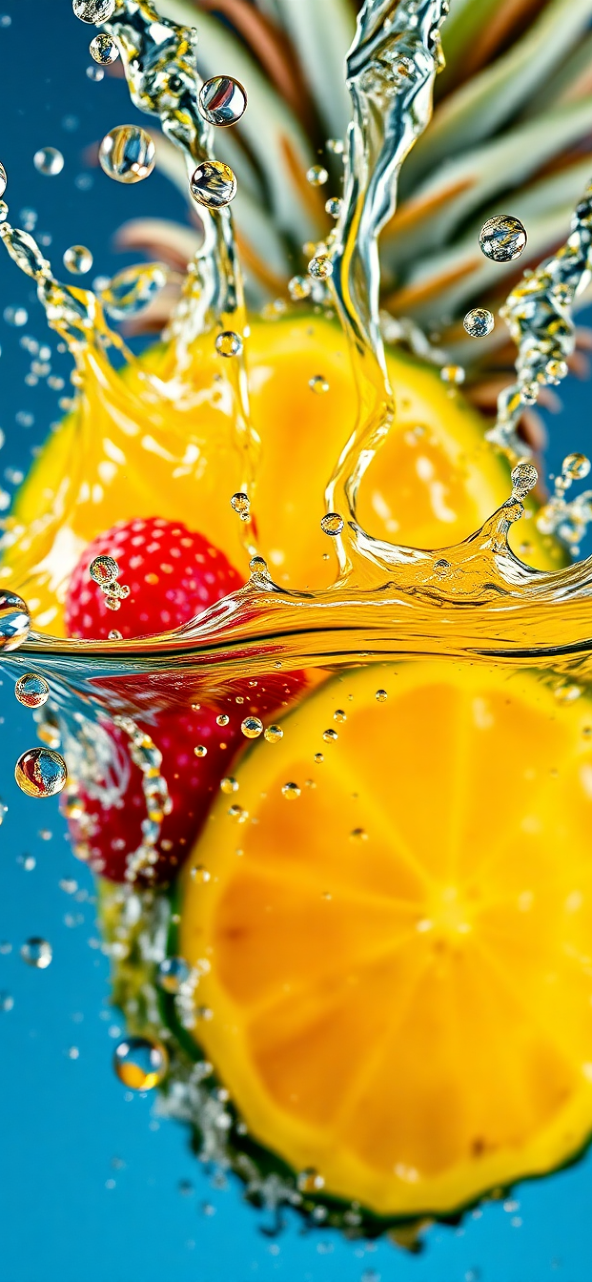 Tropical Fruit Splash Water Droplets Photorealistic Wallpaper