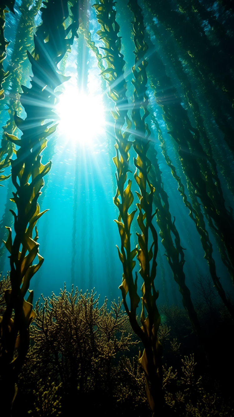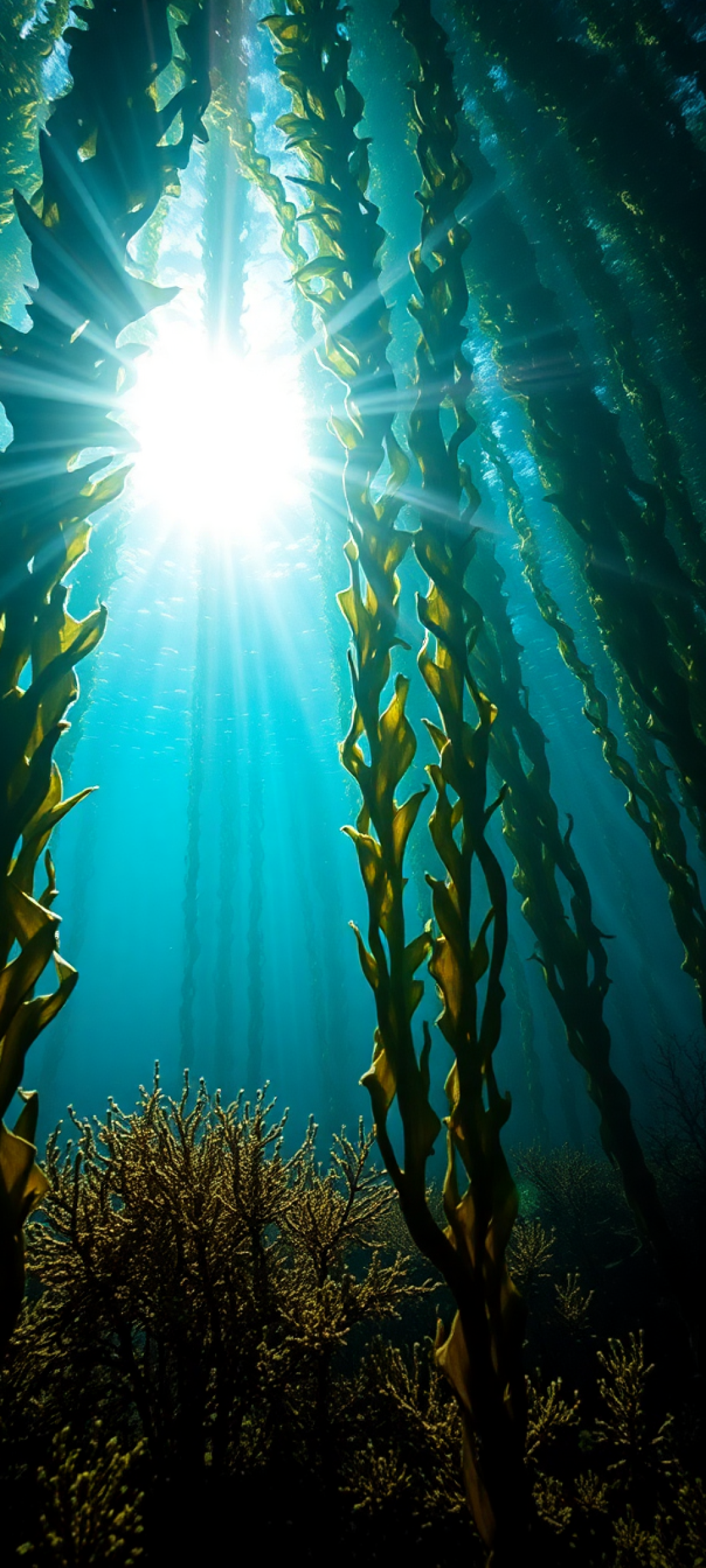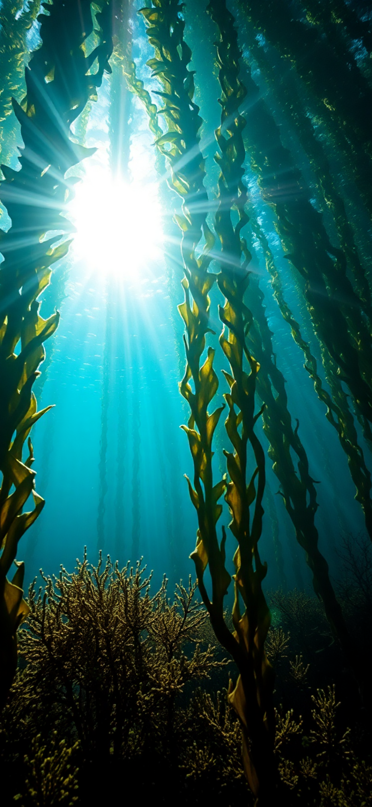 Underwater Kelp Forest Sun Rays Photorealistic Wallpaper
