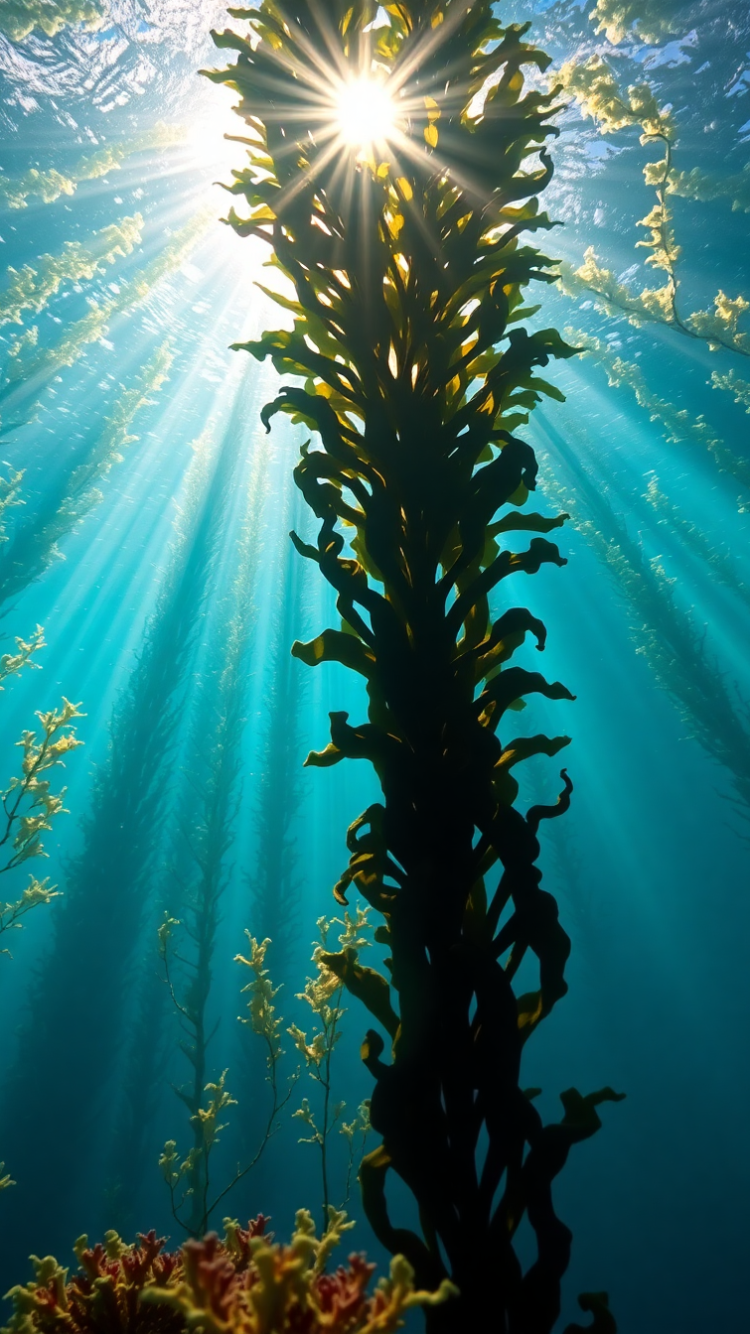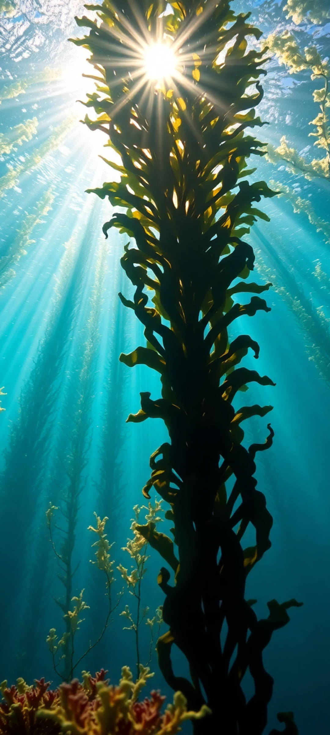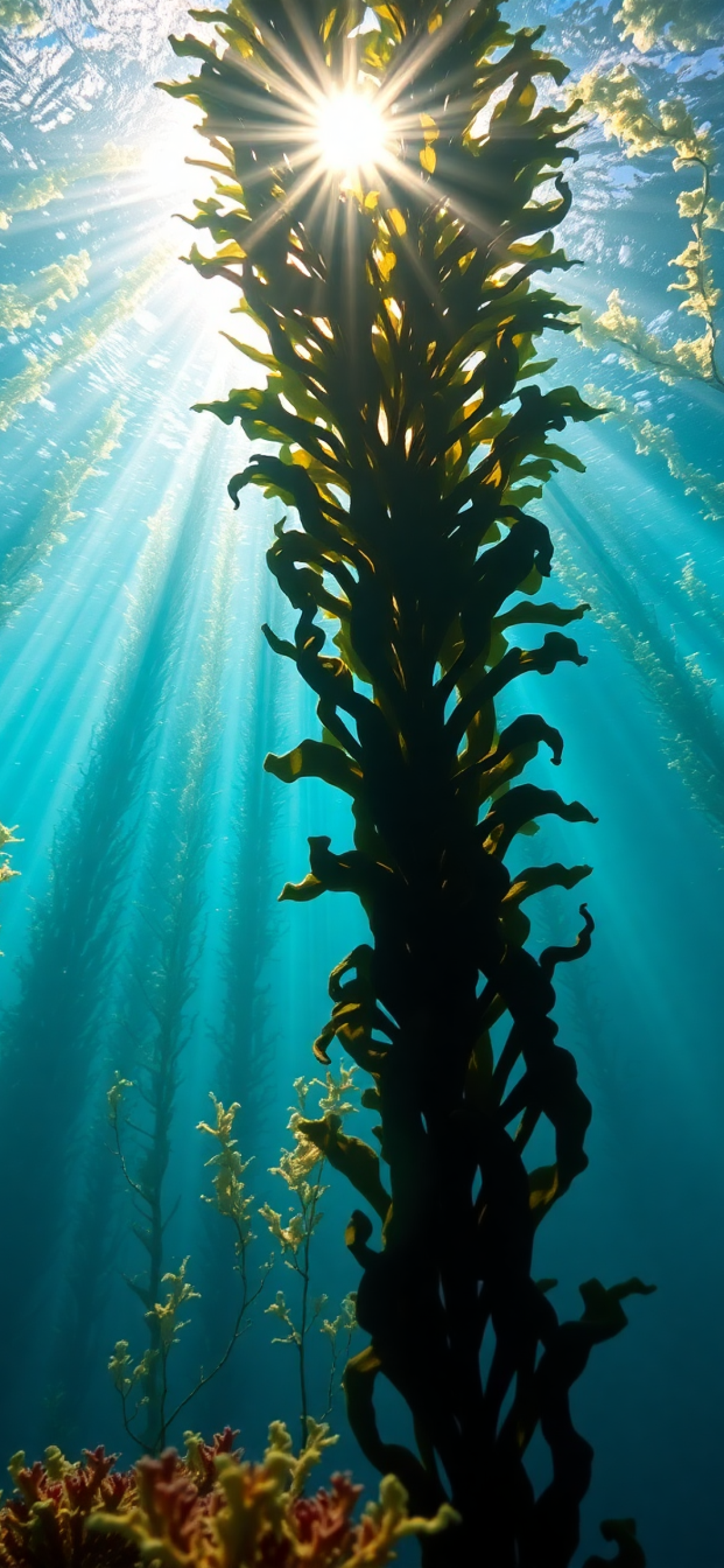 Underwater Kelp Forest Sun Rays Photorealistic Wallpaper