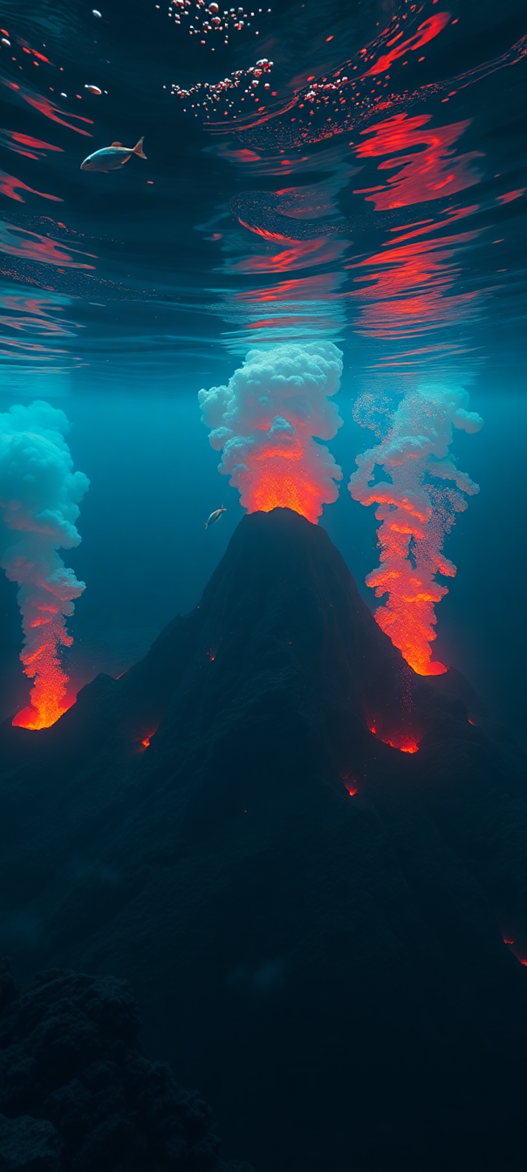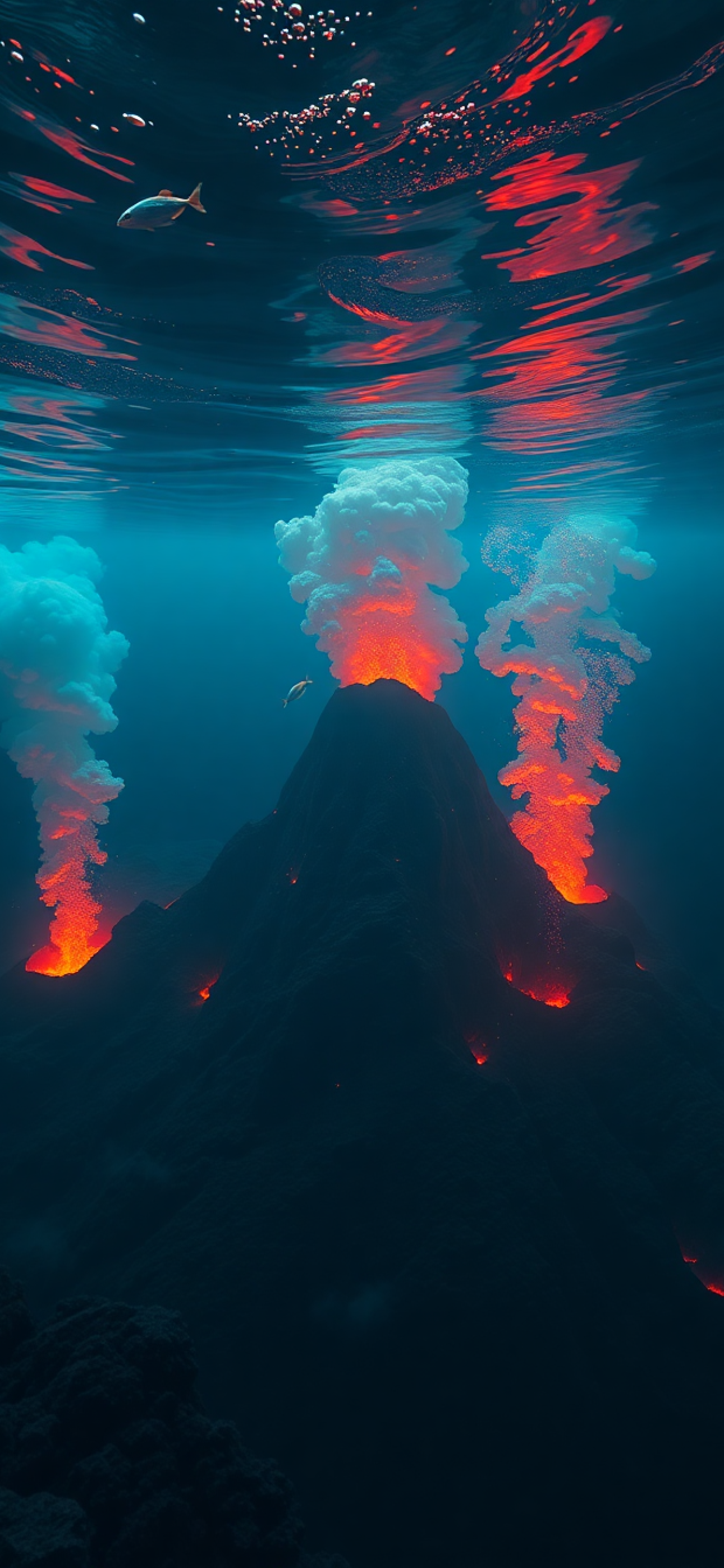 Underwater Volcano Vents Smoke Sea Photorealistic Wallpaper