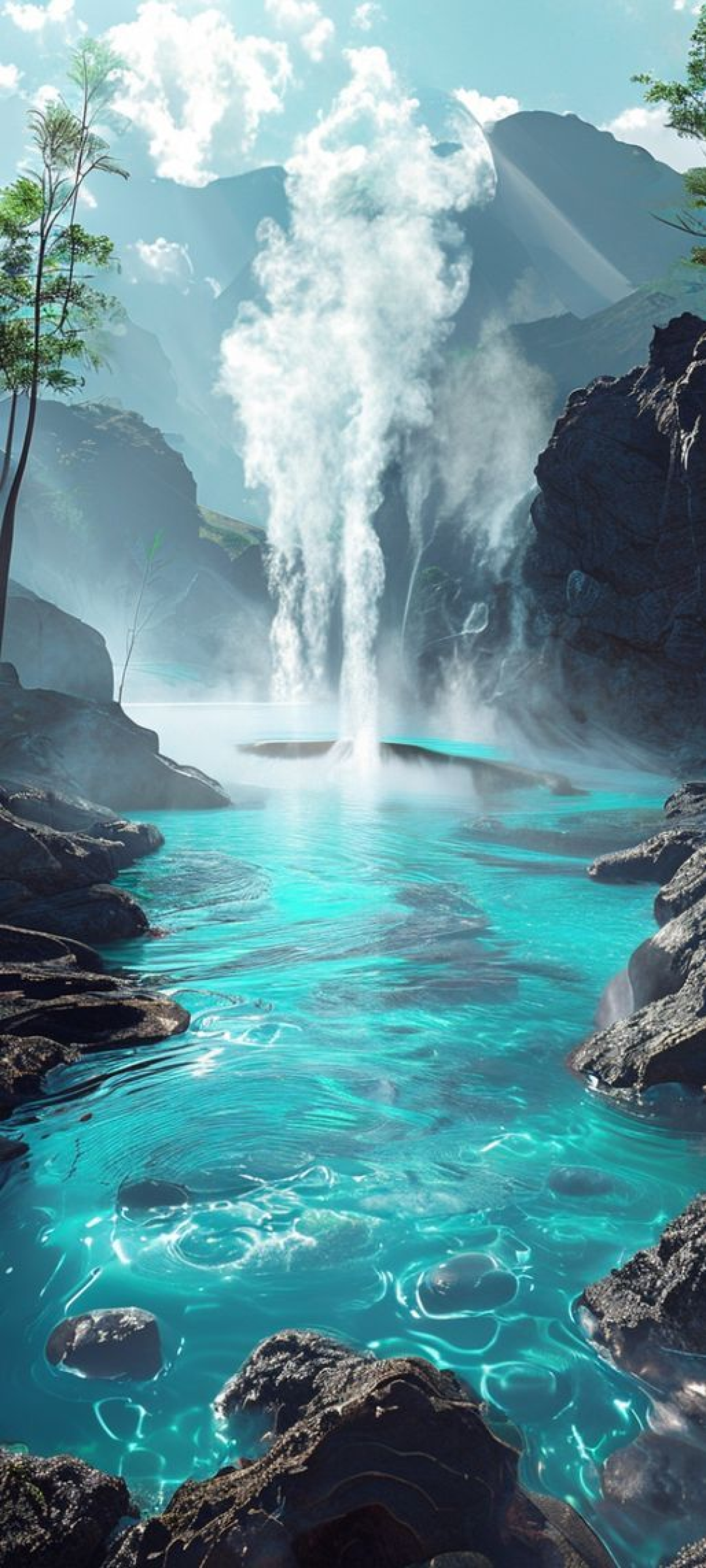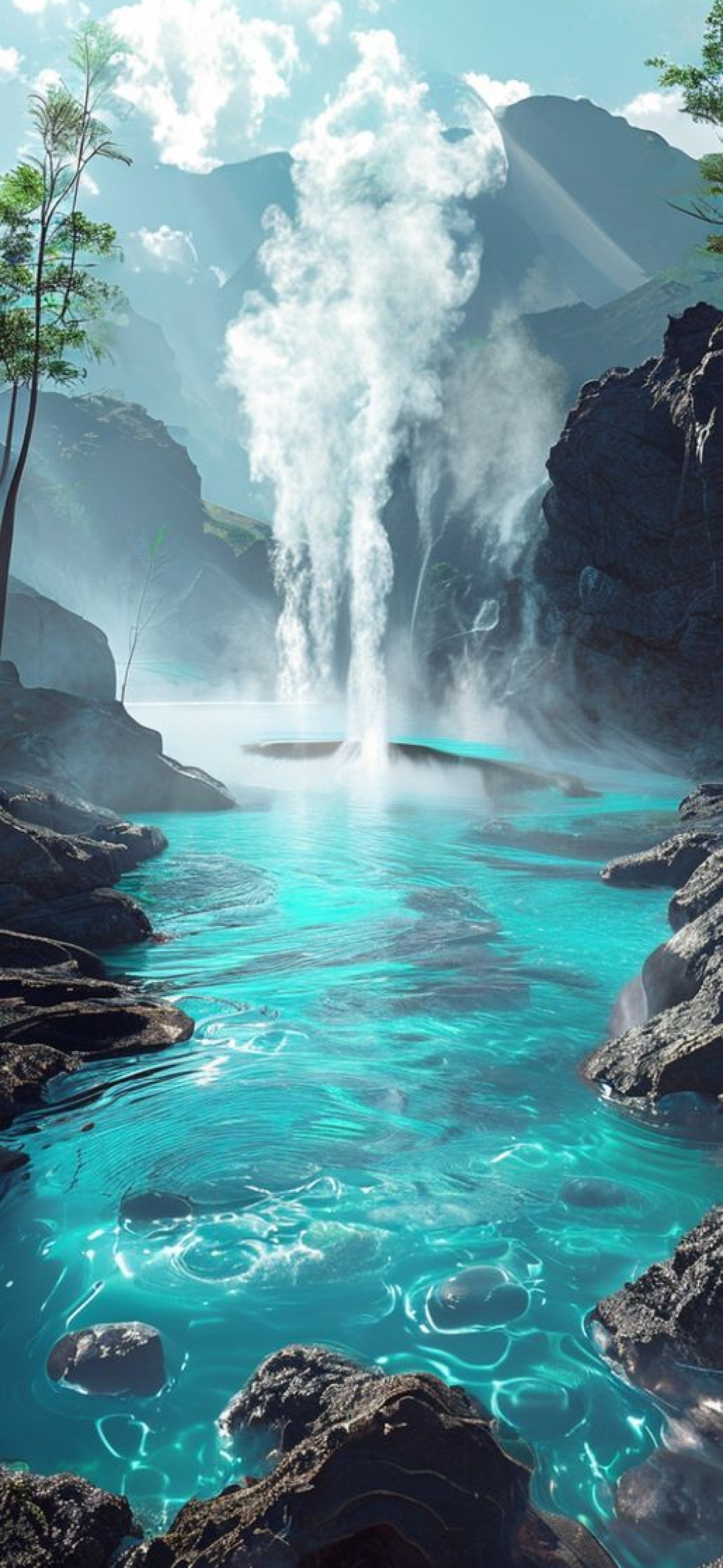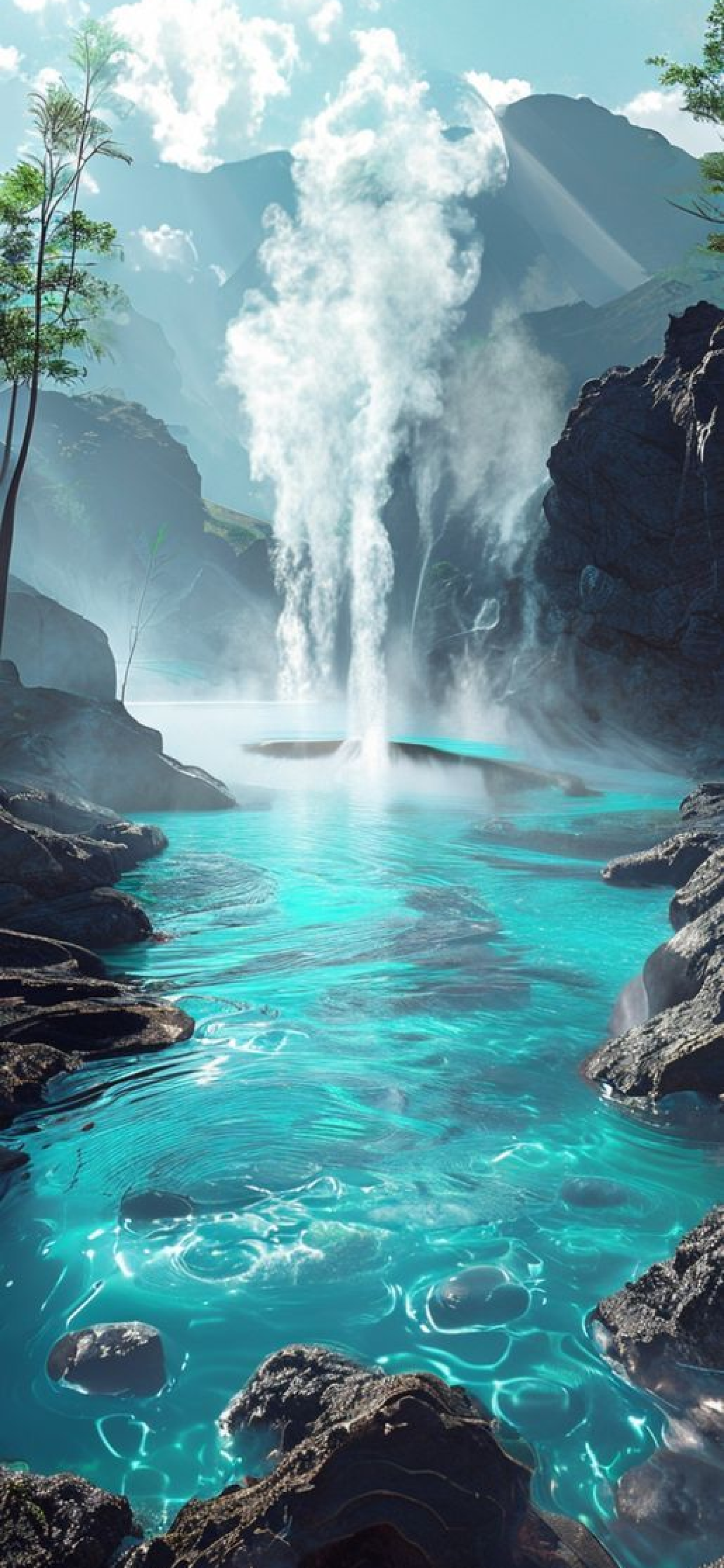 Volcanic Hot Springs Steam Rising Photorealistic Wallpaper