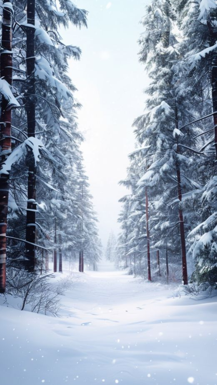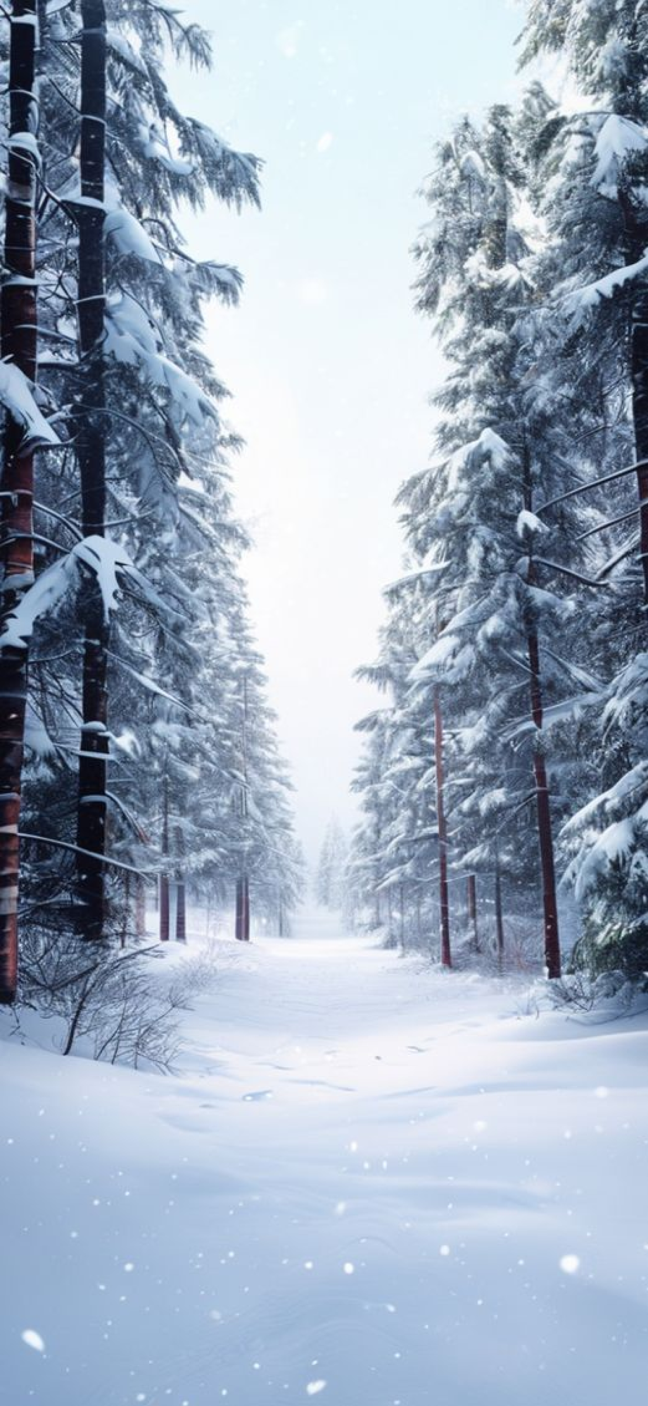 Winter First Snow Pine Trees Photorealistic Wallpaper