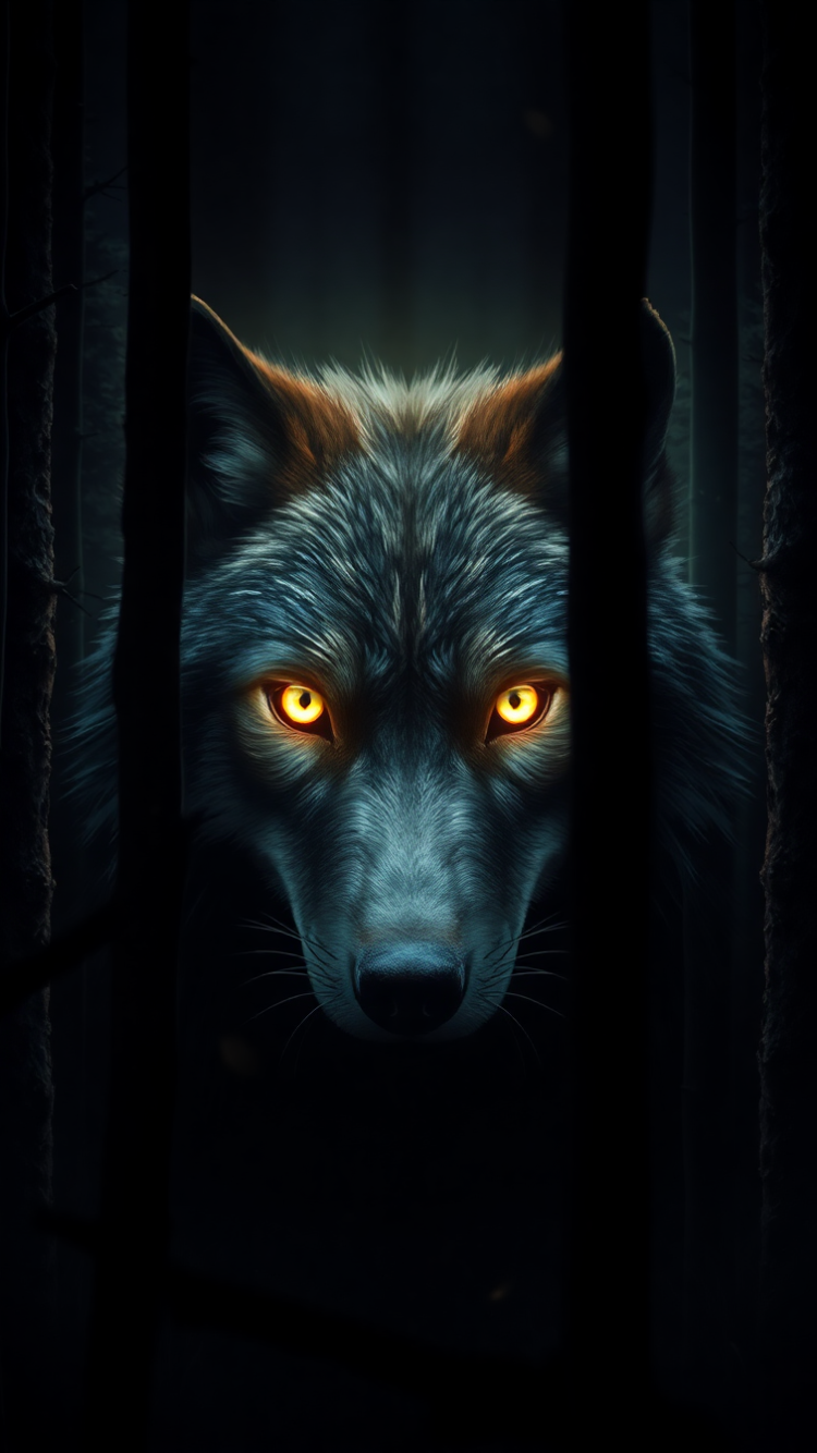 Wolf Eyes Glowing In Dark Digital art Wallpaper